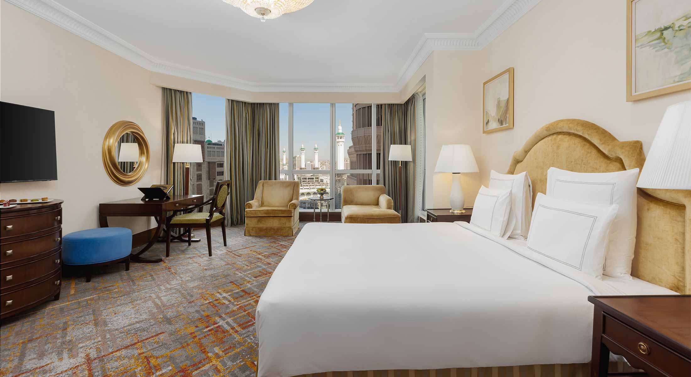 العديد من الغرف توفر إطلالات جزئية أو كاملة على الكعبة والمسجد الحرام.